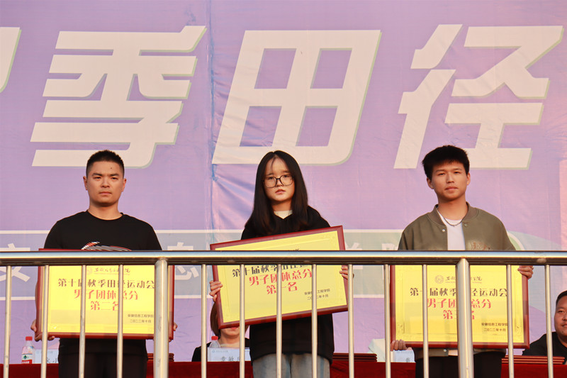 鲜花怒马少年时,且歌且行且从容,10月22日下午,随着4x100米接力赛的结束,历时两天的安徽信息工程学院第十届秋季田径运动会顺利完成各项赛程,圆满闭幕。副校长章敏凤,校长助理宋小秋,各单位负责人,总裁判长李佳莉出席本次闭幕式,学校各单位中层管理干部,全体运动员、裁判员和师生代表参加。闭幕式由副校长汪忠国主持。