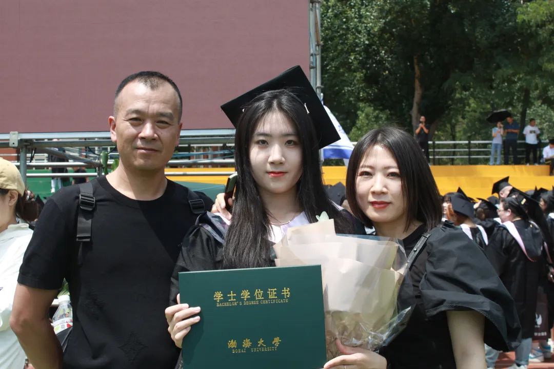 毕业生与 一家人共同合影。渤海大学 董俊彤 高乐涵 李子维 刘金澳 张馨月 祝崎峰 摄