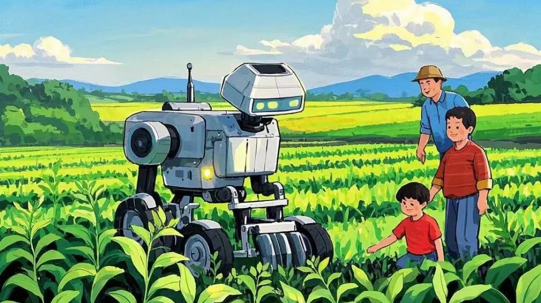 未来的农田里,农民伯伯根据自己的经验选种、规划,而AI机器人则帮忙扛起辛苦的劳作;