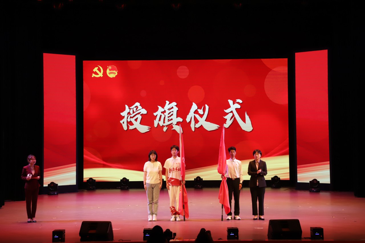 (共青团重庆市委副书记 杨春渝、团中央宣传部宣教处副处长 罗靓为重庆移通学院“青马工程”青年讲师团及“红色基因”青年党史宣讲团”授旗)