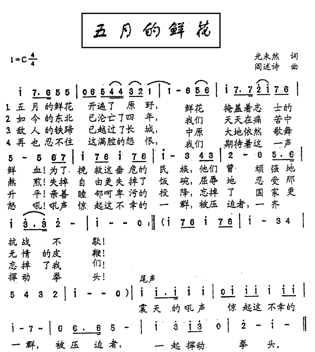 “一二·九”运动,是学校流亡史上最悲壮、最辉煌的一页,铸就了学校光荣的爱国主义传统。学校音乐教师阎绍璩被学生们视死如归的凛然气概所感染,把著名诗人光未然的《五月的鲜花》谱成了曲,这首歌从东北大学迅速传遍全国,成为了家喻户晓的抗日救亡歌曲。