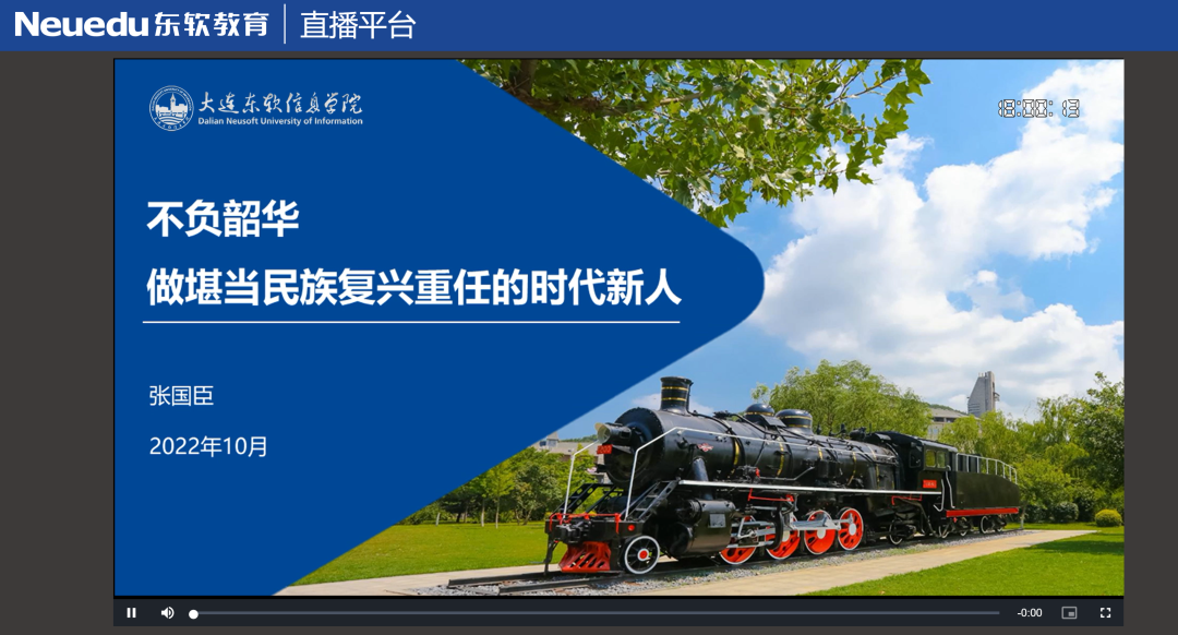 大连东软信息学院党委组织2022级新生云端开启“思政大课”。