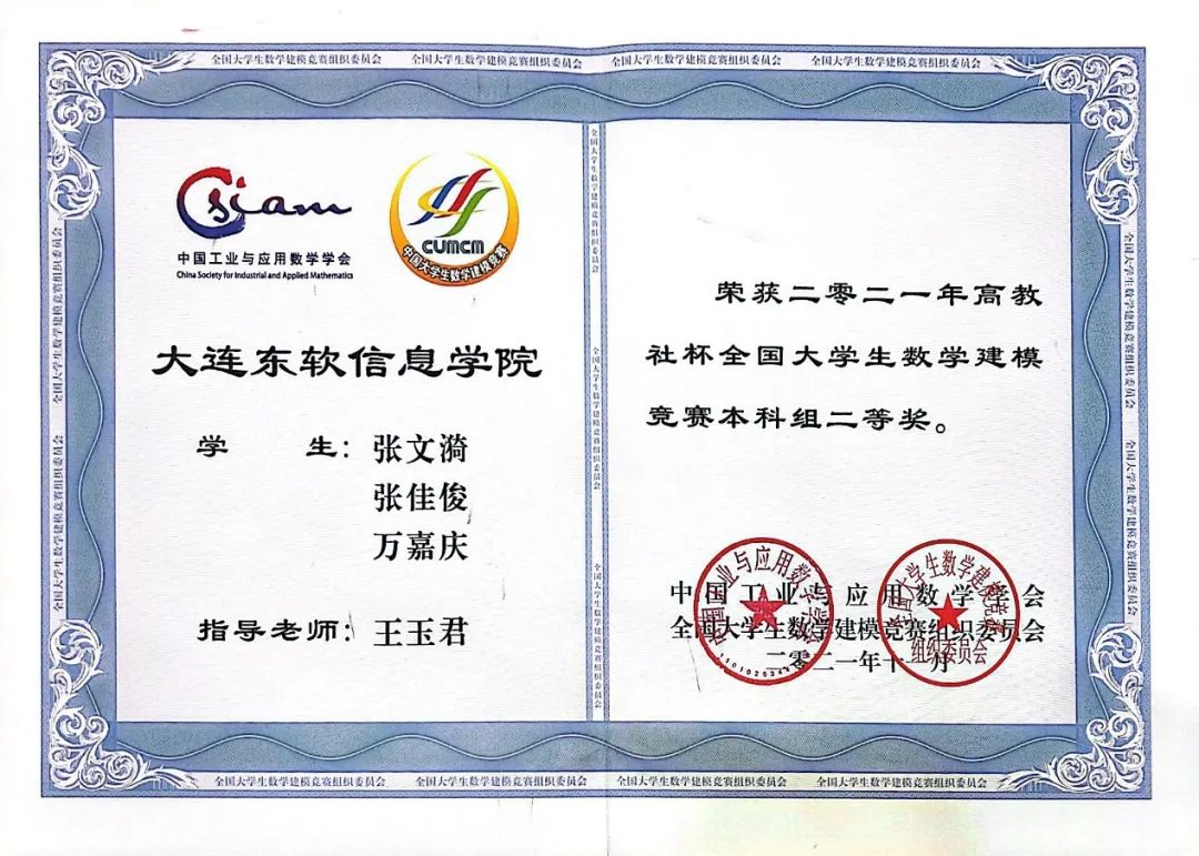 2021年全国大学生数学建模竞赛国赛二等奖、省赛一等奖