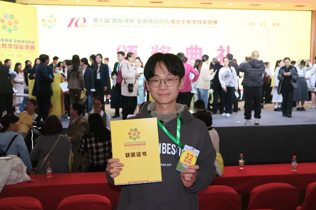 作为一名师范生,他致力于成为一名优秀的英语教师,并为之不懈奋斗。在学科教学技能、教学法等课程中,他积极配合老师的课堂互动、志愿展示自己的教学设计、与老师探讨课例和教学理论。同时,他延续以赛促学的方式,在大三通过学院师范生集训营面试,进行广东省师范生技能大赛的备赛,并在2024年9月入围决赛荣获二等奖。他继续参加第十届“田家炳杯”全国师范院校师范生技能竞赛,并荣获全国一等奖(排名第4)。除了竞赛,他也在一次次实践中磨练教学技能:他在实习学校把握机会,累计授课二十余节,听取多方意见后不断精进。