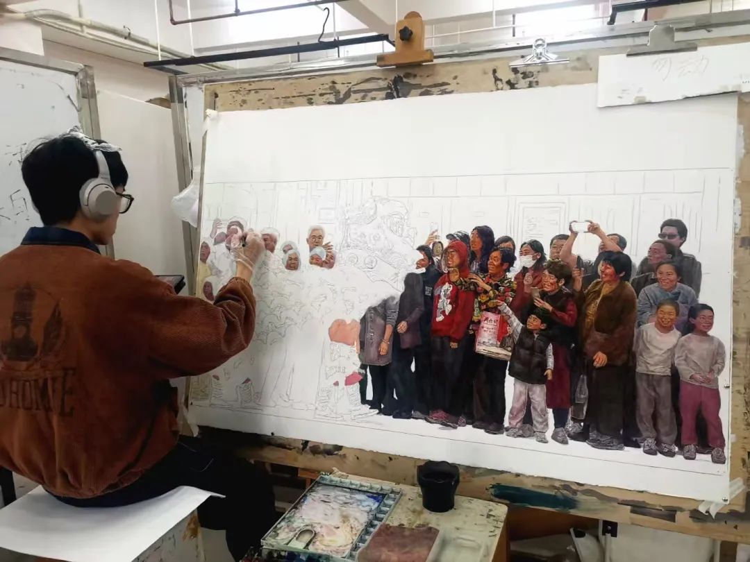 背后是青春的责任也是青春的担当。他的作品因此成为了志愿者们辛勤付出与不懈奋斗的忠实记录,他力求通过真实的笔触,去捕捉学生青春坚韧的气质,以及他们在新时代背景下所展现出的精神风貌,创作出