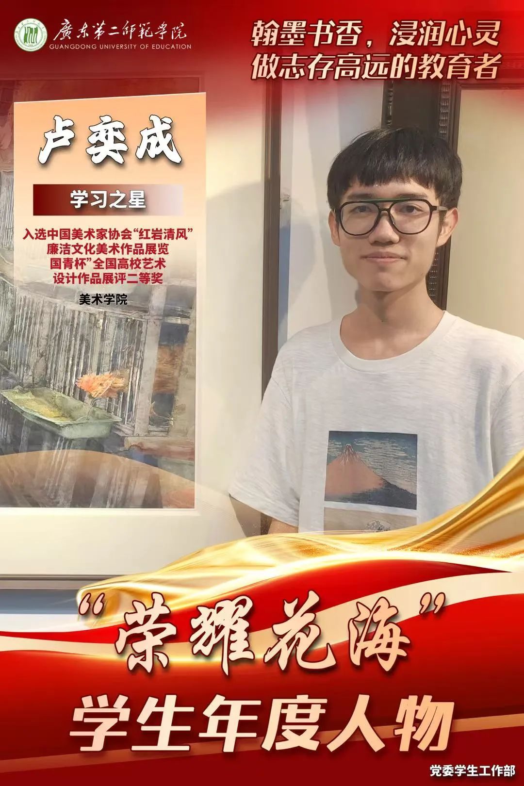 向美而行,执画笔绘华年。他为了能够更加切实地表达画作内容,努力提高专业能力,通过不懈努力在专业和综合考评方面都取得满意的进步,大三学年绩点排名进步25%,综测排名进步22%。以班级排名第一的成绩,获得了国家奖学金,优秀学生一等奖学金。