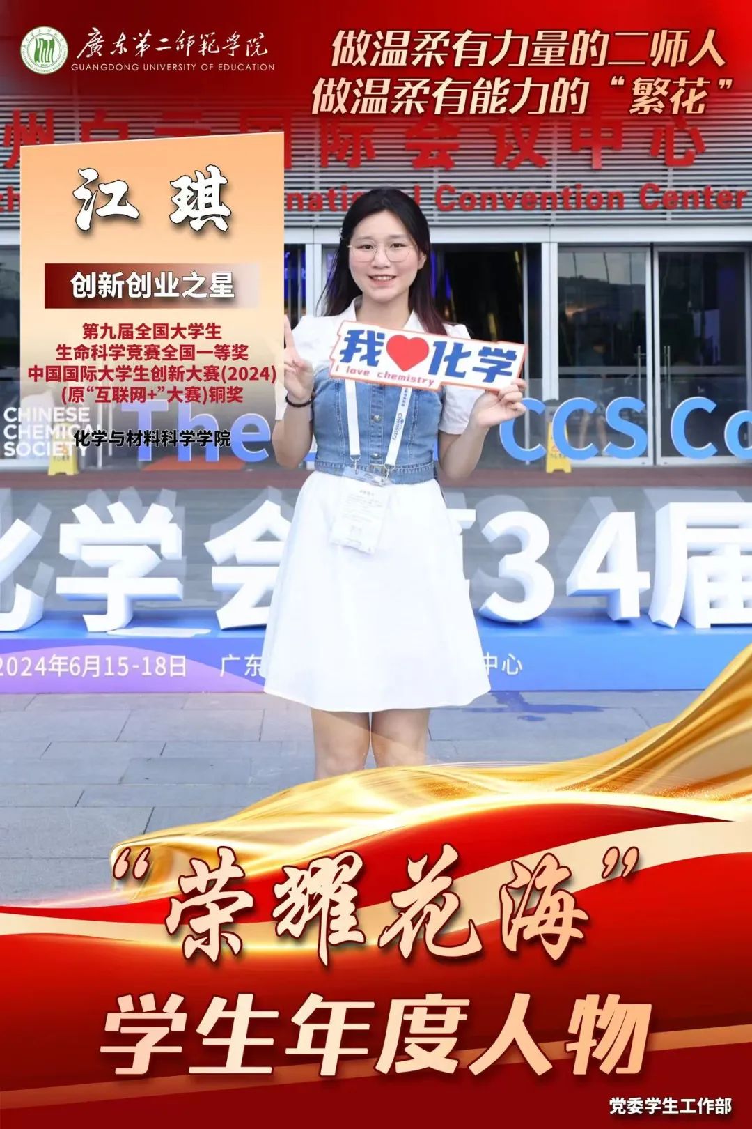 等枝桠,成繁花,作为广二师学子的她说:“愿做一粒种子,扎根‘希望田野’,积蓄‘向上力量’,继续书写她与广东第二师范学院,‘种子’与‘田野’的故事。”她是来自21化学教育B班的江琪,怀揣着梦想,她在专业学习上向下扎根,向上生长,不断进步,大三期间综测第一,累计获得国家奖学金、优秀学生一等奖学金奖等4项奖学金。