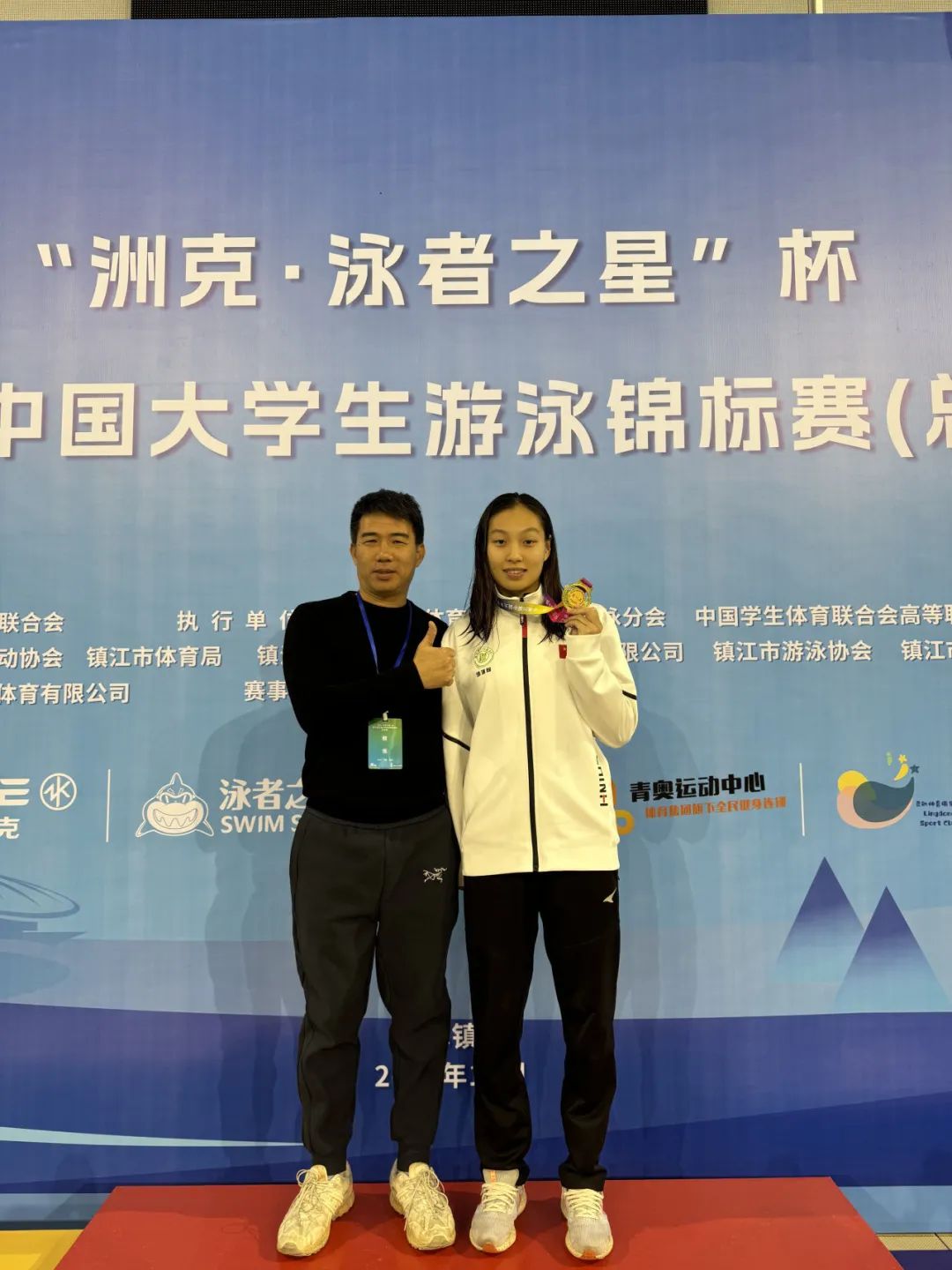 在大三上学期她迎来了机会,迈向更大的舞台,在第23届中国大学生游泳锦标赛(总决赛)大放异彩。在丙B组的赛场上,面对来自全国各地的顶尖选手,高加慧同学毫不畏惧,凭借扎实的训练和顽强的斗志,一举夺得女子100米蛙泳和200米蛙泳两项冠军。在男女子4x100米自由泳接力和男女子4×100米混合泳接力项目中,她与队友紧密配合,分别获得第三名的佳绩,荣获“优秀运动员”称号,并且成为我校第一位全国冠军的游泳运动员。这些成绩的背后,是她无数个日夜的辛勤付出,是她对梦想的执着追求。