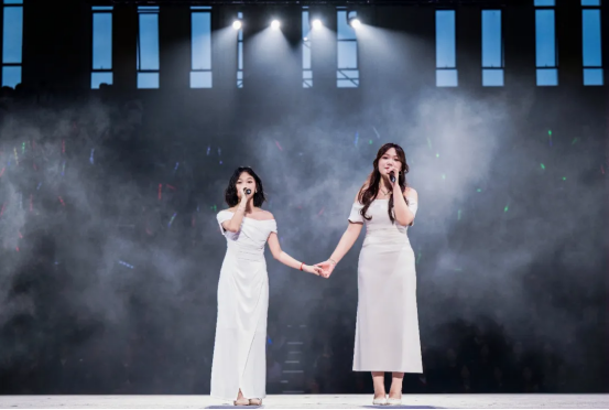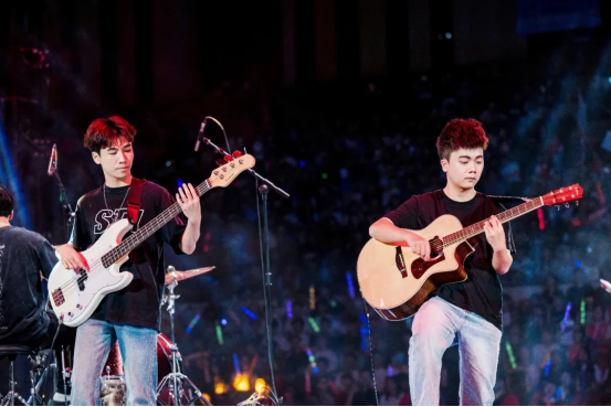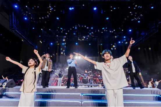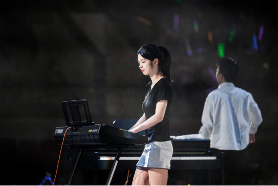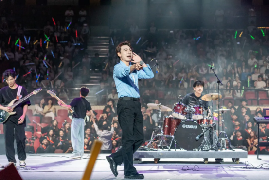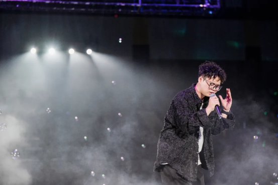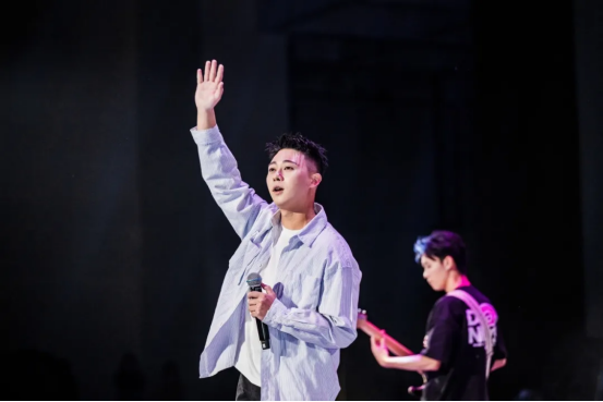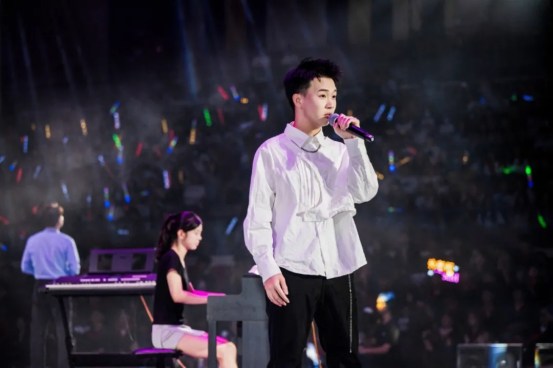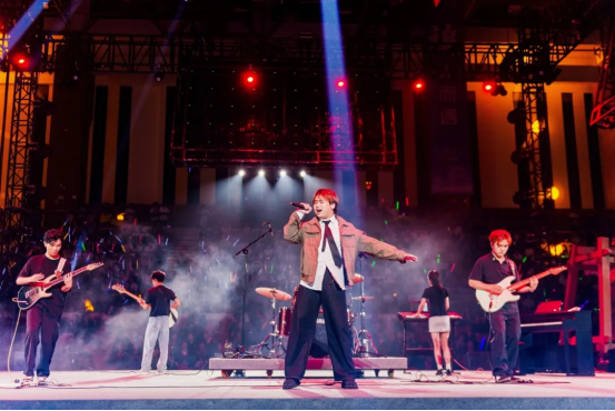 毕业演唱会在合唱《世界赠予我的》中温情启幕,纯净歌声表达了毕业生对母校的感恩与眷恋。方菲老师与艺术团舞蹈队以《流芳》翩然起舞,光影间演绎着青春芳华的感叹以及对未来的憧憬。张琦、谢苑诗的二重唱《如果的事》勾勒青春未竟的留白,荧光摇曳如星河流转;毕业生朱异镗独唱《耿》沙哑倾诉校园点滴,台下泪光闪烁。街舞队与声乐队以串烧《等你的回答》《棒棒糖》《第一天》燃爆舞台,青春热浪席卷全场。