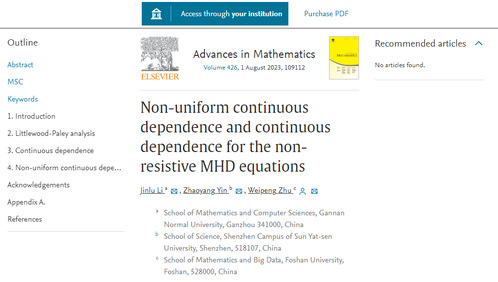 近日,国际数学权威期刊《Advances in Mathematics》(中国数学会认定T1级高质量科技期刊)刊发我校数学与计算机科学学院李金禄博士与中山大学殷朝阳教授、佛山科学技术学院朱伟鹏博士合作的最新研究论文《Non-uniform continuous dependence and continuous dependence for the non-resistive MHD equations》,我校为第一单位。