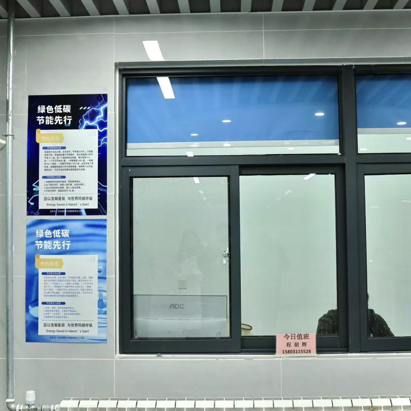 海报聚焦于节水节电主题,一方面着重强调二者在资源保护与可持续发展进程中的重要意义,另一方面,以宿舍生活场景为宣传阵地,张贴节水节电海报,展示日常节水节电小窍门,提醒同学们从日常生活的点滴做起,逐步养成绿色生活习惯。