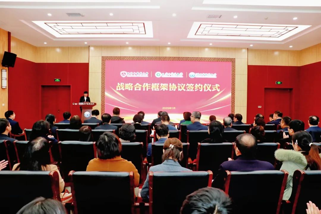 1月10日,北京中医药大学、天津中医药大学、河北中医药大学举行战略合作框架协议签约仪式。北京中医药大学党委副书记、校长唐志书,天津中医药大学校长高秀梅,河北省教育厅贾海明,省卫生健康委党组成员、省中医药局党组书记、局长张凯出席仪式并致辞。北京中医药大学校长唐志书、天津中医药大学校长高秀梅与河北中医药大学校长郭毅代表三校签署战略合作框架协议,与会嘉宾共同启幕三校战略合作。省教育厅、省中医药局有关处室负责同志,河北中医药大学领导班子全体成员、机关部门和各二级单位负责同志参加签约仪式。河北中医药大学党委书记高维娟主持会议。