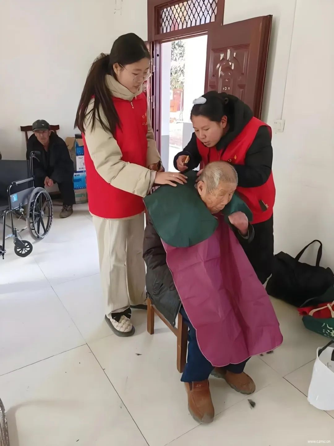 走进敬老院、社区养老中心,陪老人唠家常,听他们讲述往昔岁月;组织趣味活动,为老人单调生活添彩......王宏硕同学探访社区老人,了解生活需求并提供帮助;张婧妍、王艺霏、郑佳琦同学走进敬老院,细致入微地为老人们打扫、整理房间,耐心聆听老人年轻时期的红色故事,与他们分享生活的点滴,并为老人们进行基础身体检查......