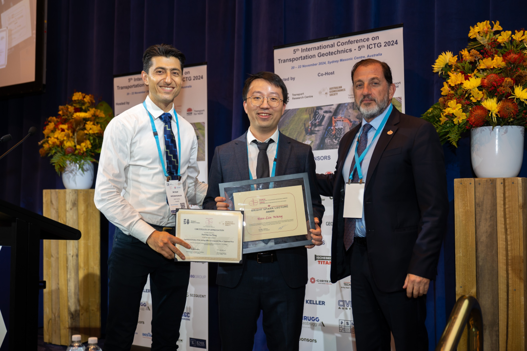 近日,第五届国际交通岩土工程学术会议在澳大利亚悉尼举办。湖南大学土木工程学院王瀚霖教授荣获国际土力学与岩土工程学会“未来之星奖”(Bright Spark Lecture Award)。