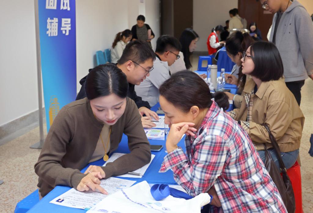 招聘会现场设置了生涯咨询、简历指导、征兵入伍服务专区,将职业规划与就业指导课程延伸至招聘会现场,为毕业生顺利求职精准助力。各学院党委书记、副书记及毕业班辅导员来到“访企拓岗洽谈专区”,积极与用人单位沟通对接,开辟人才培养、就业合作渠道;同时,他们还化身“求职推荐官”,结合企业岗位需求为学生精准匹配适配机会,用“一对一”的精准推荐为毕业生打通求职“最后一公里”。职业发展协会针对此次招聘会招募与培训志愿者205人,展服组、后勤组、新宣组、机动组为用人单位提供全程服务,得到了参展企业的一致好评。
