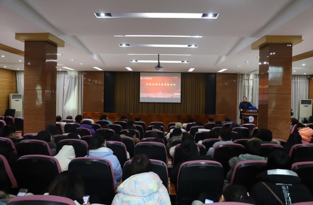 最后,校党委副书记唐新强总结讲话,他结合寒假期间的见闻,从“关于职业、关于工作、关于态度”三个方面同与会人员进行了语重心长的交流。
