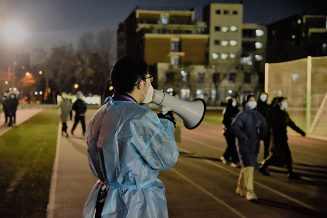 校研究生会成员王秀文驻守南开大学津南校区,寒风凛冽,灯火通明,面对室外零下七八摄氏度的低温,她彻夜不眠,坚守一线,组织引导现场秩序,协调安排志愿岗位,从1月8日至17日,津南校区已进行了七轮核酸检测,她从未离开志愿者岗位,为核酸筛查工作保驾护航。