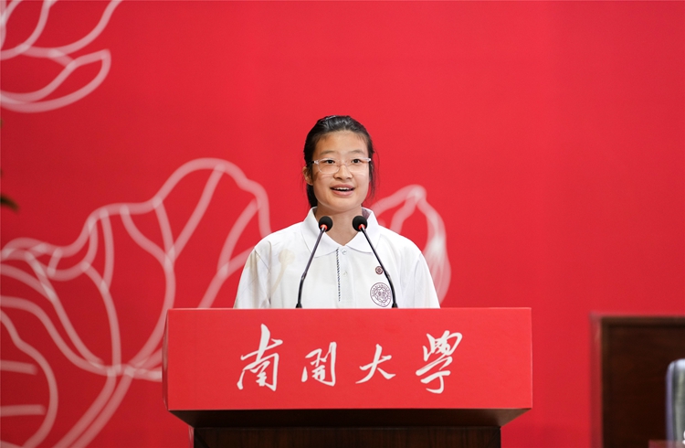 新生代表、中国语言文学类本科生李芳沅在发言中坚定地说,“一路向南开,我向着爱国的南开,走向信仰的未来;一路向南开,我向着创新的南开,走向发展的未来。今天,我们一路向南开,浸润她的底蕴,分享她的辉煌;明天,我们奋斗新征程,担起炎黄脊骨,再铸中华荣光!强国有我,未来有我!”
