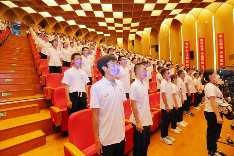 “渤海之滨,白河之津,巍巍我南开精神。汲汲駸駸,月异日新,发煌我前途无垠……”开学典礼在全体师生齐声高唱南开校歌中圆满礼成。