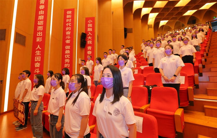 “大江歌罢掉头东,邃密群科济世穷。面壁十年图破壁,难酬蹈海亦英雄。”典礼上,全体新生集体诵读《为中华之崛起而读书》,一起重温青年时代周恩来力图“破壁而飞”的凌云壮志和献身救国事业的革命豪情。大礼堂内,铿锵有力的青春誓言久久回荡,感染着在场的每一位南开人,更传递出新南开人矢志报国的坚定信念。