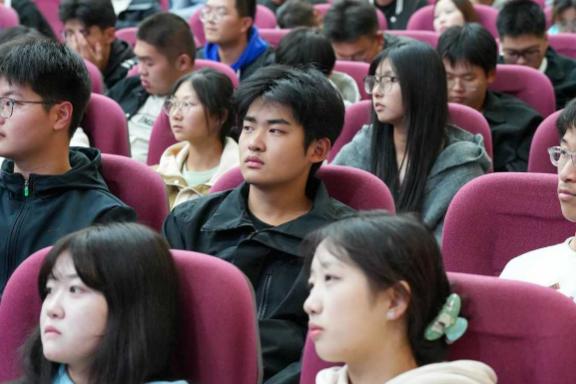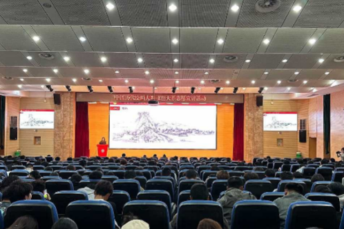 图为E出大系宣讲团成员在学校礼堂进行艺术公开课