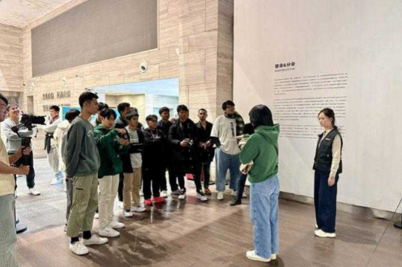 E出大系宣讲团在新中国迎来75周年华诞之际带领泰国留学生参观了南京金陵美术馆。展览精选了64位南京画家笔下的74件南京主题书画作品,囊括中国画、油画、版画、雕塑、书法等多种门类,宣讲团成员通过“江山”、“求索”、“初心”三条脉络介绍南京艺术家笔墨丹青记录下的山河新貌、探索奋斗与人民伟业。通过此次中国美术馆之行,让留学生体会到这不仅是一次艺术的鉴赏之旅,更是一次文化的深度体验之旅,深入地了解中国艺术的博大精深和无穷魅力,激励两国学生在今后的学习与生活不断探索、追求卓越,促进不同文化之间的交流与融合。