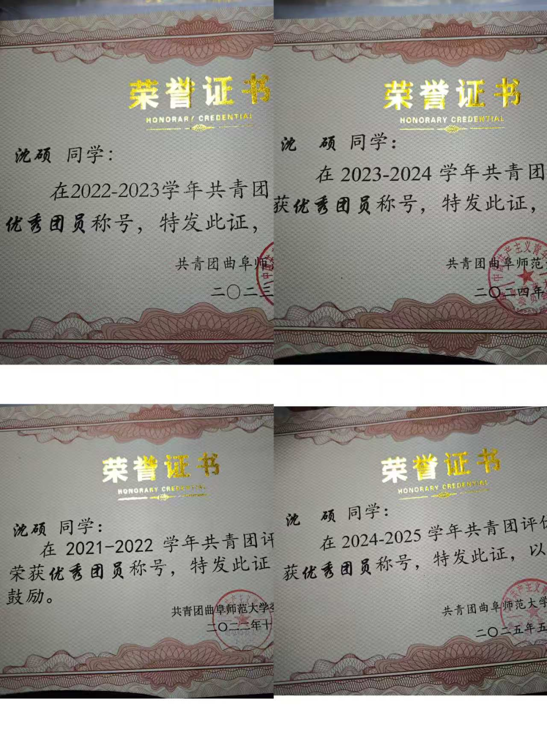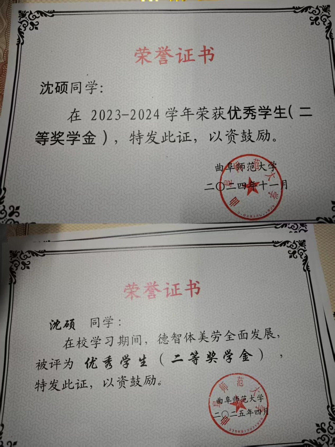 获2023-2024学年曲阜师范大学优秀学生(二等奖学金)、优秀团员