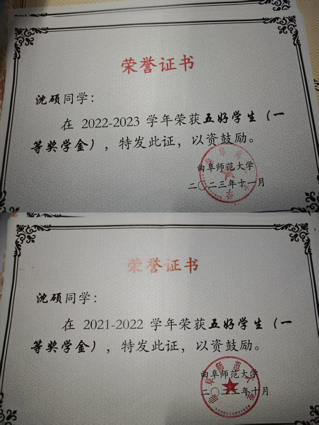 获2022-2023学年曲阜师范大学五好学生(一等奖学金)、优秀团员