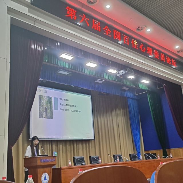 在第六届全国百佳心理委员论坛上,郑瑞婷代表学校作了交流发言,分享了四川工商职院心理委员工作和特色心理健康教育活动开展情况,加强了四川工商职院与全国各高校之间心理委员工作和心理健康服务工作的交流合作,展现了四川工商职院学子阳光进取、乐于助人的青春形象。