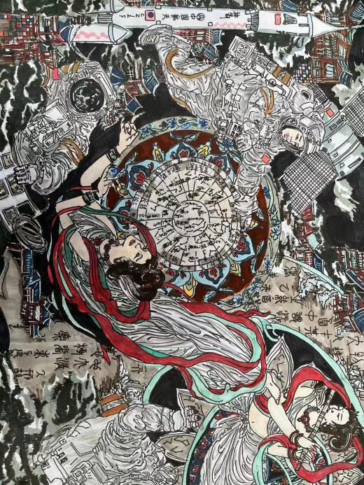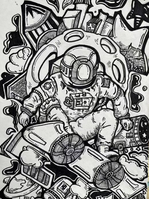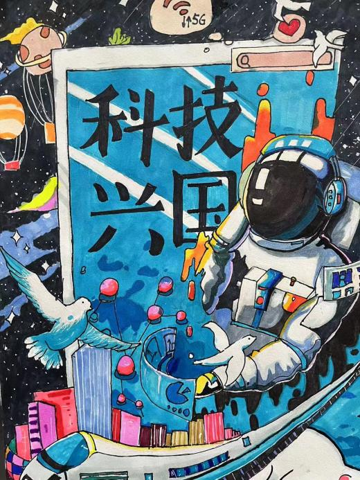为拓展美术教育专业学生的创新思维能力,表演与艺术教育学院根据神舟十六号载人飞船成功返回、神舟十七号成功发射的时事热点背后所展现出的中国航天精神开展了主题课堂,美术教育专业师生以“中国航天精神”为主题进行创作。此次创作涉及美术教育专业三笔一画、简笔画、书法、素描等课程,同学们展示出了较高的专业水平和绘画技巧。