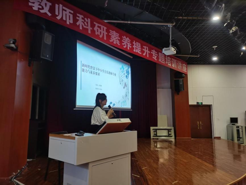 为更好的促进艺术教育专业群发展,加强与属地教育主管部门的联系并用好属地教育资源,表演与艺术教育学院组织开展了《素质教育背景下中小学音乐教师专业素养要求》主题讲座,由崇州市教育局音乐教研员石伟利老师主讲。本次讲座对音乐教师的专业素养、创新能力和教学研究能力进行了全面剖析,针对音乐教育专业学生的见习工作提出了可行性建议,为学院的学科建设及专业发展提供了助力。