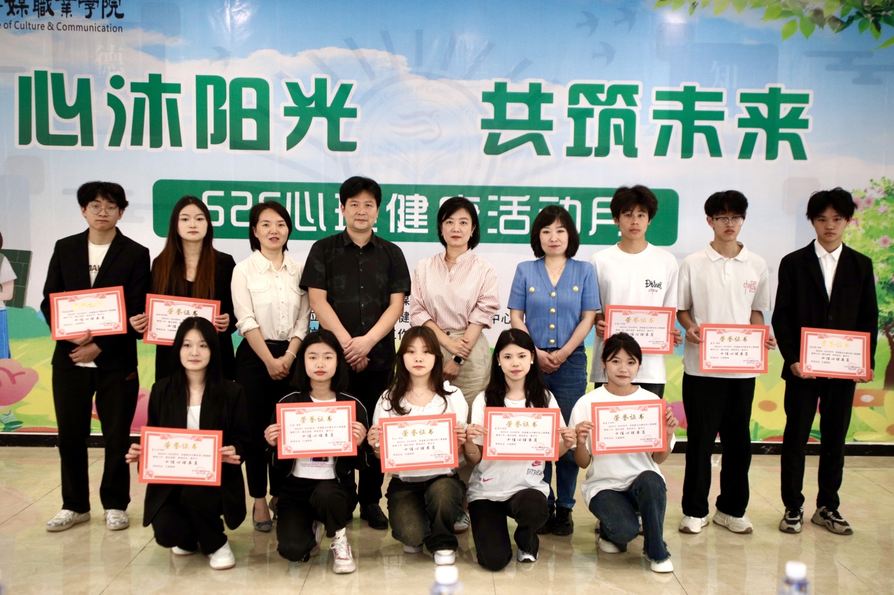 校长助理杜文秀宣读了四川文化传媒职业学院2023——2024学年“十佳心理委员”获奖名单,学校领导向获奖的心理委员颁发荣誉证书,予以表彰,并合影留念。