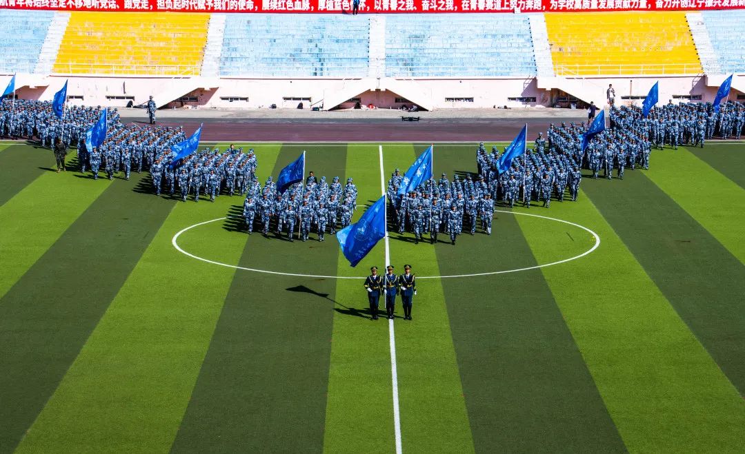 在操场上变换队形,先后摆出“三年行动”“活力”“一心向党”“何为四问”“空天报国”“担当”“奋斗”“SAU加油”等巨型图形,他们铿锵有力地表达了“心怀国之大者,矢志空天报国”的铮铮誓言,