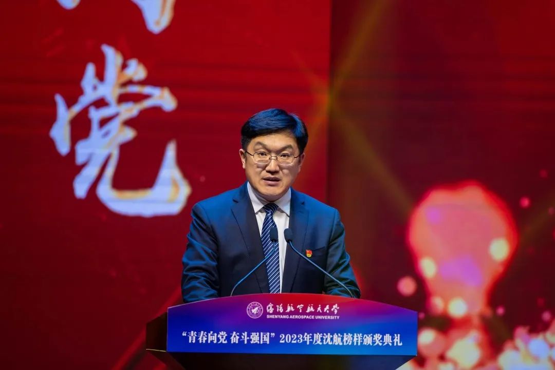 12月27日下午,2023年度沈航榜样颁奖典礼在蓝天剧场隆重举行。沈阳航空航天大学党委副书记、校长李润东,党委常委、纪委书记孟宪梅,党委常委、副校长王金刚,副校长张业伟,副校长卫海桥,党委常委、党委组织部部长徐宝贵,党委常委、党委宣传统战部部长周驰,各学院院长、书记、副书记、全体辅导员、学生代表以及学生家长代表出席本次颁奖典礼。