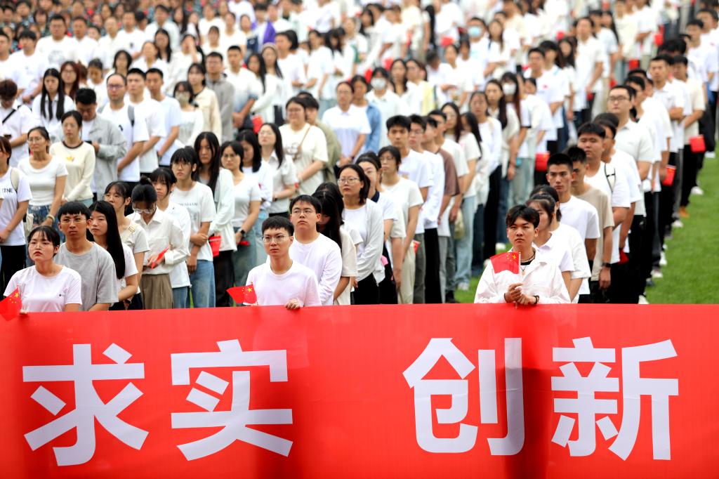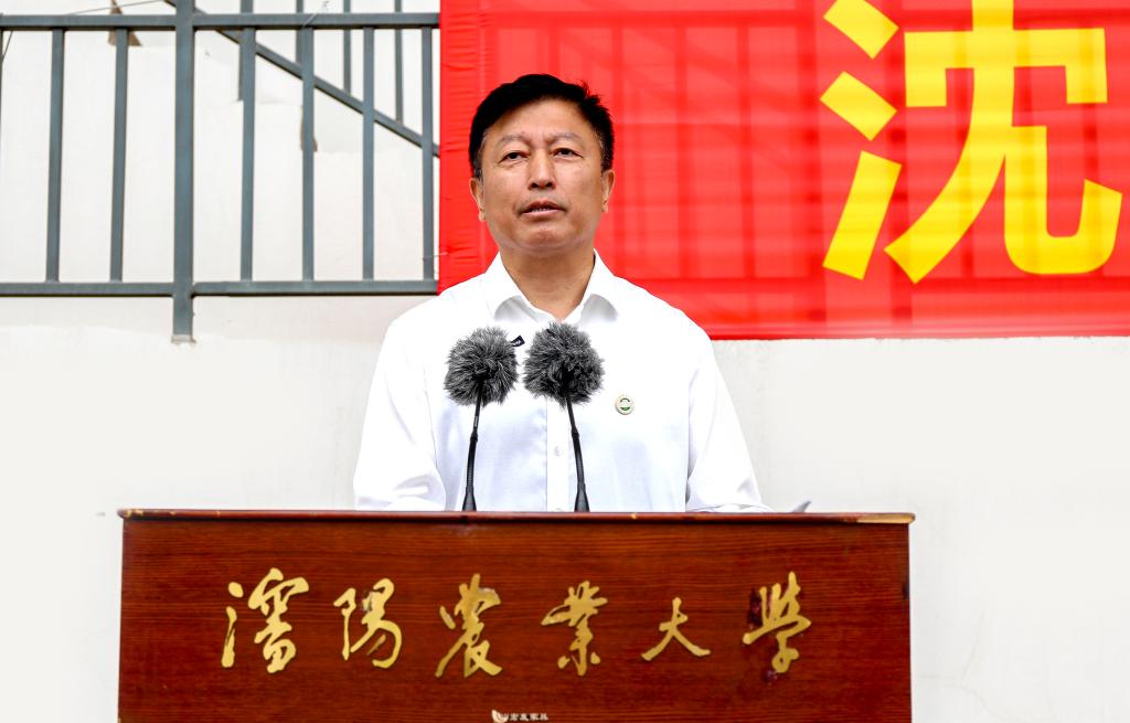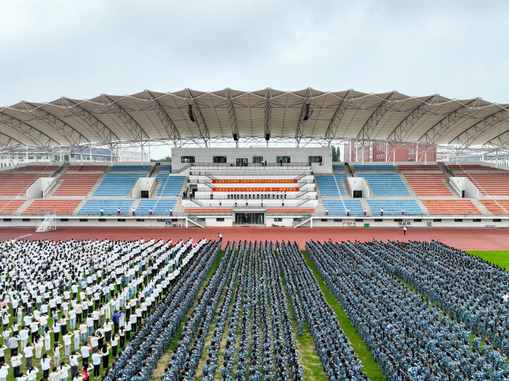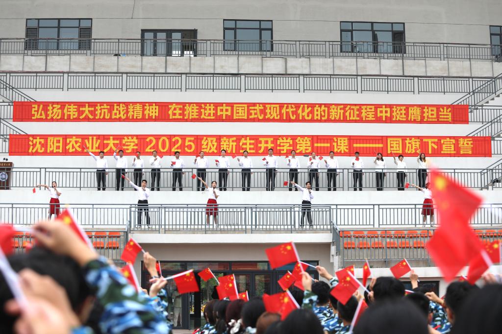 9月1日,沈阳农业大学2025级新生开学第一课——国旗下宣誓在凡舟体育场举行。党委书记刘洋以“弘扬伟大抗战精神 在推进中国式现代化新征程中挺膺担当”为题,为全体新生讲授国旗下的“开学第一课”。校领导吴东立、王海龙、田爱民、范守君出席。
