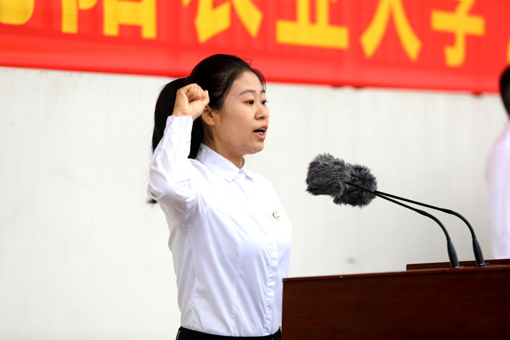 迎着初升的朝阳,鲜艳的五星红旗在雄壮的国歌声中升起,全体师生庄严肃立、齐唱国歌,向国旗行注目礼。全体2025级新生在国旗下庄严宣誓,铮铮誓言,字字铿锵,“我志愿学习农业,献身农业;心系祖国,情系人民;尊师爱校,文明守纪;刻苦钻研,精益求精;团结勤奋,求实创新;德智体美劳,全面发展;脚踏实地,志存高远;默默耕耘,努力登攀。为了解除人间的饥寒,为了大地的丰收,为了母亲的欢颜,为了国徽上的谷穗永远饱满而奋斗终身!”