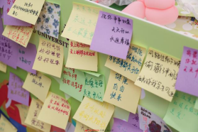 游园会现场,一个个充满创意的活动摊位前围满了学生。在“抛开焦绿”“打倒坏心情”“拾粽传馨”摊位前,充满趣味的小游戏,让学生们在轻松的氛围中释放了情绪,收获了愉悦;“心诗绽放”摊位前,学生们写下三行情诗,将藏在心底的爱与期许化作动人的文字;“爱的抱抱”摊位前,一个巨大的玩偶张开双臂,迎接每一个前来拥抱的学生,温暖的拥抱让大家感受到了满满的关爱与支持。而“好心情彩票箱”更是人气爆棚,学生们将写有祝福的便签投入箱中,再随机抽取一张陌生人的祝福,在善意的传递中感受着校园的温暖。“你笑起来真好看”主题绘画活动中,学生们用画笔仔细描绘自己和朋友的微笑,一幅幅生动的画作传递着积极向上的生活态度。在“心理科普和咨询”市集摊位前,学校的“心理朋辈成长教练”们正忙着向同学们派送心理科普小知识。