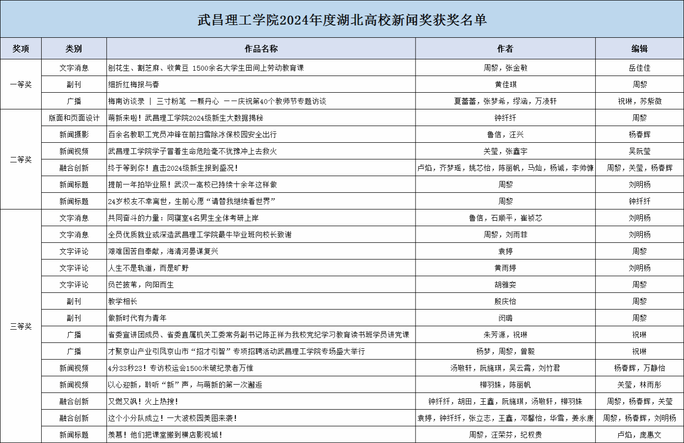 附:武昌理工学院2024年度湖北高校新闻奖获奖名单