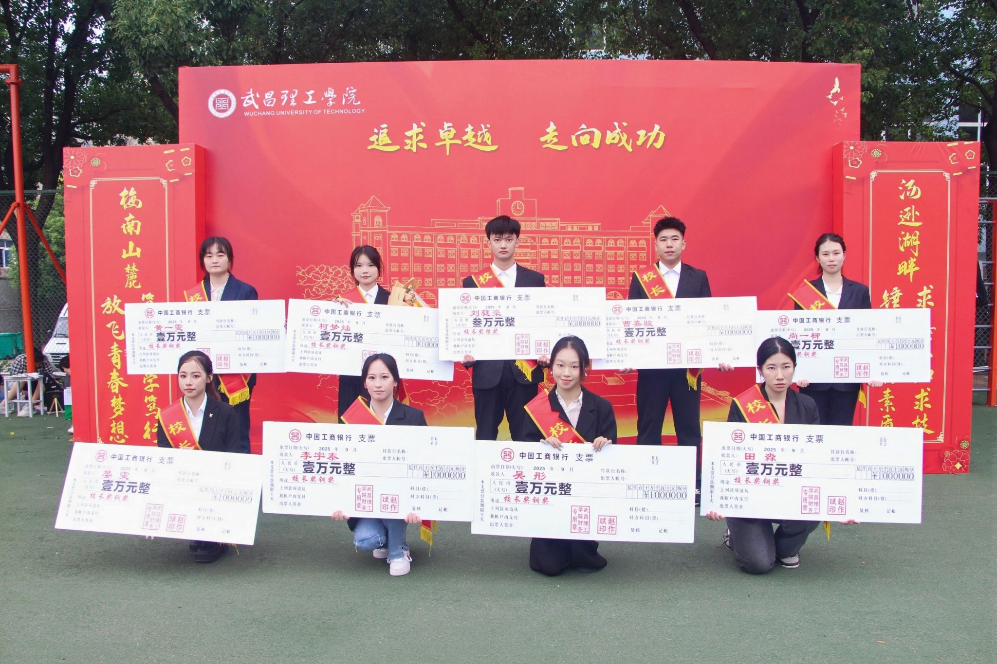 校党委书记高建勋宣读学校2024-2025学年度表彰决定,肯定了过去一学年里学子们在学业科研、实践创新等领域的突出表现,受到表彰的优秀学生代表、优秀集体代表、优秀社团代表依次上台领奖。党委副书记、副校长林娟宣读2025年“元璋创新奖学金”表彰决定,学校顾问王元璋教授亲自为获奖学生颁奖,轻声寄语,满怀对青年学子“敢闯敢试、勇攀高峰”的期许。常务副校长别业舫宣读2024-2025学年度“校长奖”表彰决定,强调“校长奖”作为学校最高荣誉,涵盖品德、学业、实践等多维度,是“成功素质教育”的优秀成果体现,校长赵作斌教授为获奖学生颁发荣誉证书与奖金,现场掌声雷动。