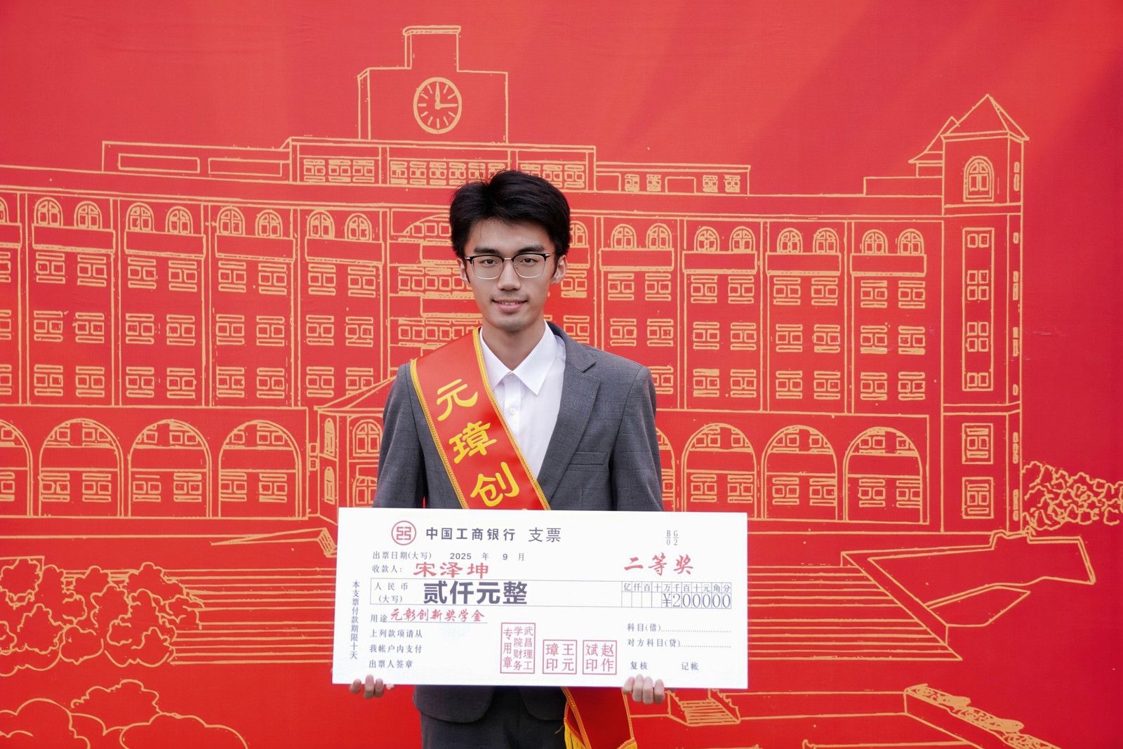 9月22日,武昌理工学院2025级新生开学典礼上颁发了“元璋创新奖学金”。该奖由著名经济学家王元璋教授发起并设立,今年共7人获奖:一等奖1名,奖励3000元;二等奖1名,奖励2000元;三等奖5名,奖励各1000元。