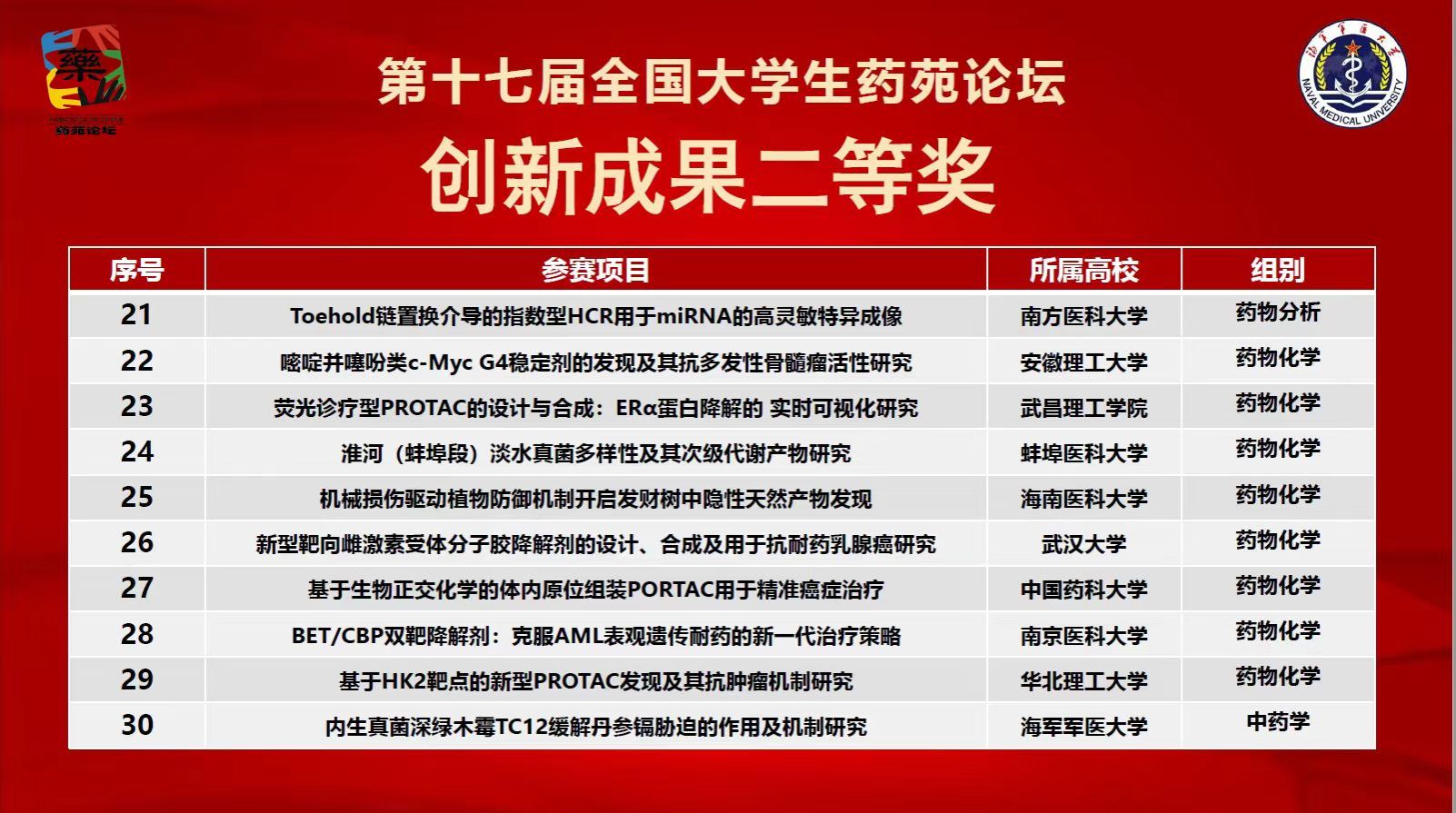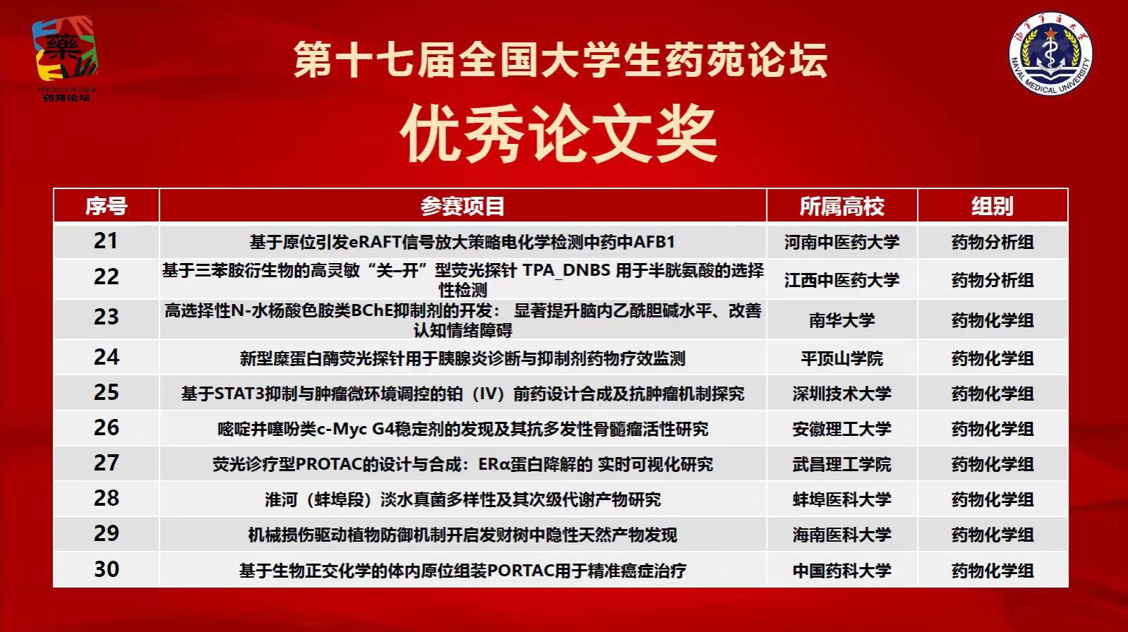 “我们高度重视学科竞赛,通过搭建“竞赛—教学—科研”联动平台、组建专项指导团队、建立激励机制等措施,全面提升人才培养质量。”生命科学学院党总支胡瑞年书记介绍道,作为学校学科建设的重点院系,学院始终以“培养高素质生物医药人才”为目标,近年来教学成绩与科研成果显著:不仅多次在国家级、省级学科竞赛中斩获佳绩,更在核心期刊发表多篇学术论文,承担多项省级以上科研课题,逐步形成“教学—科研—实践”深度融合的良性循环。此次在全国药苑论坛的亮眼表现,进一步彰显了学院在全国药学教育领域的竞争力与影响力。未来,将继续深耕生物医药领域,为培养更多高素质人才、助力我国生物医药产业发展贡献力量。