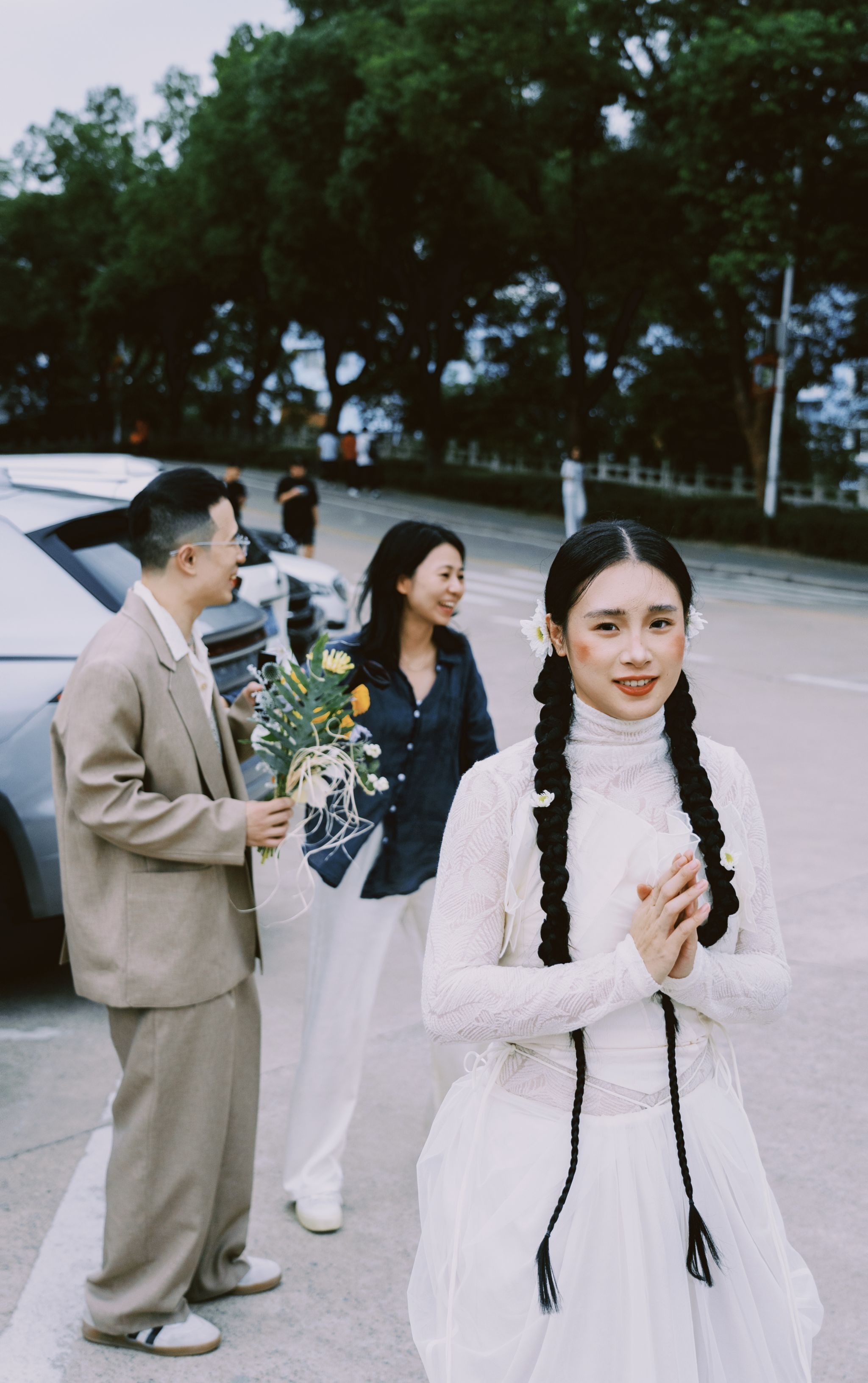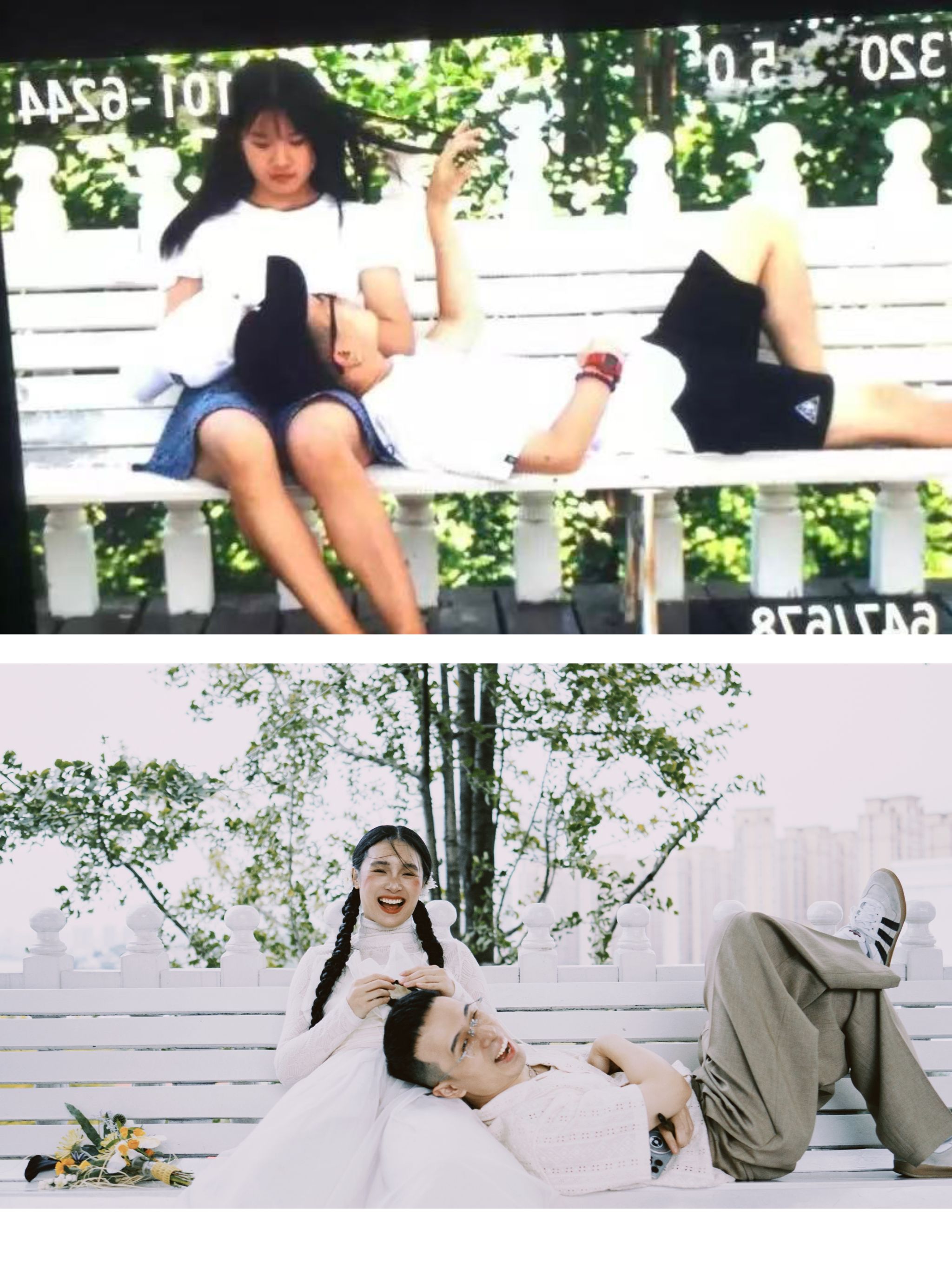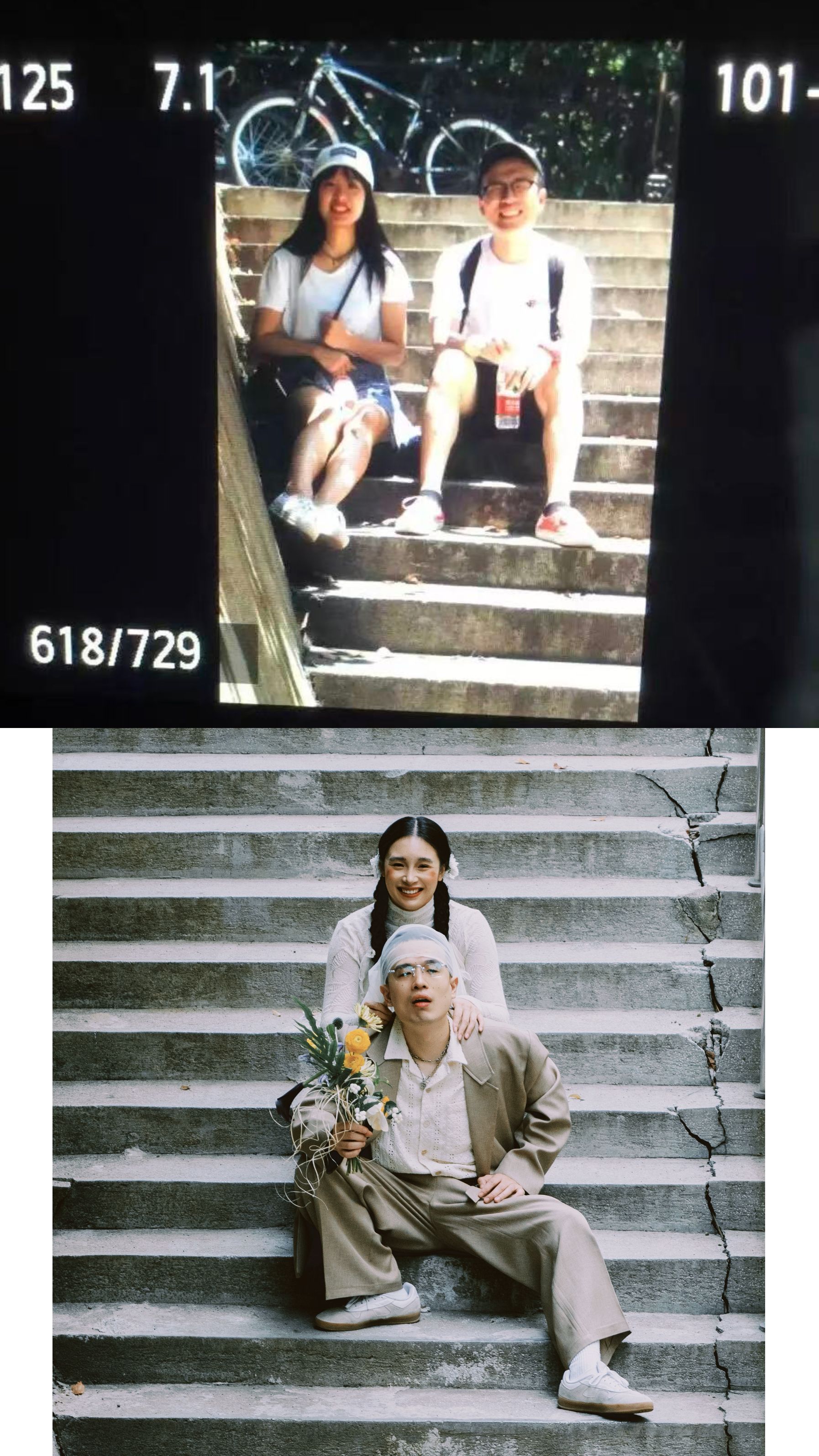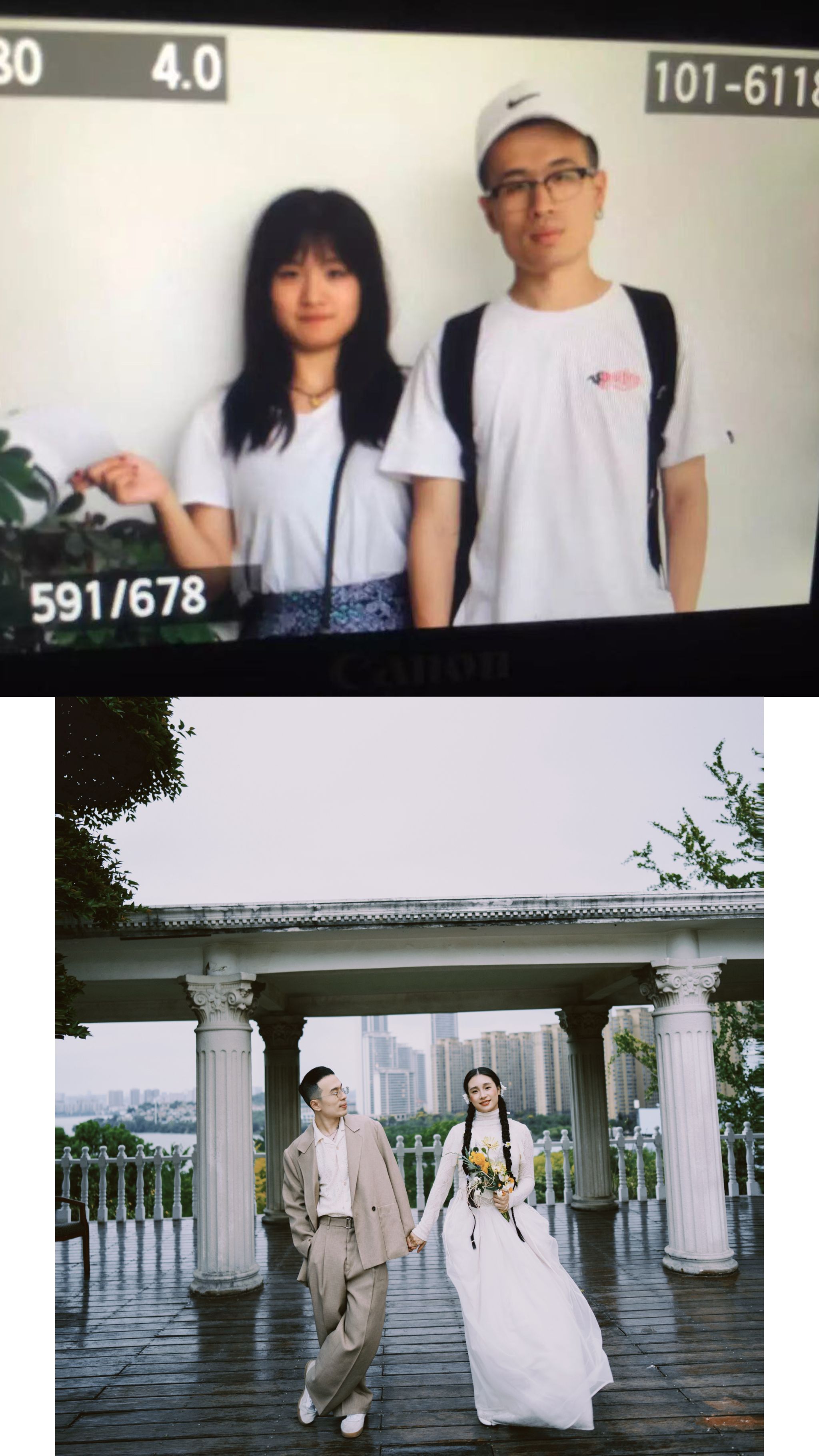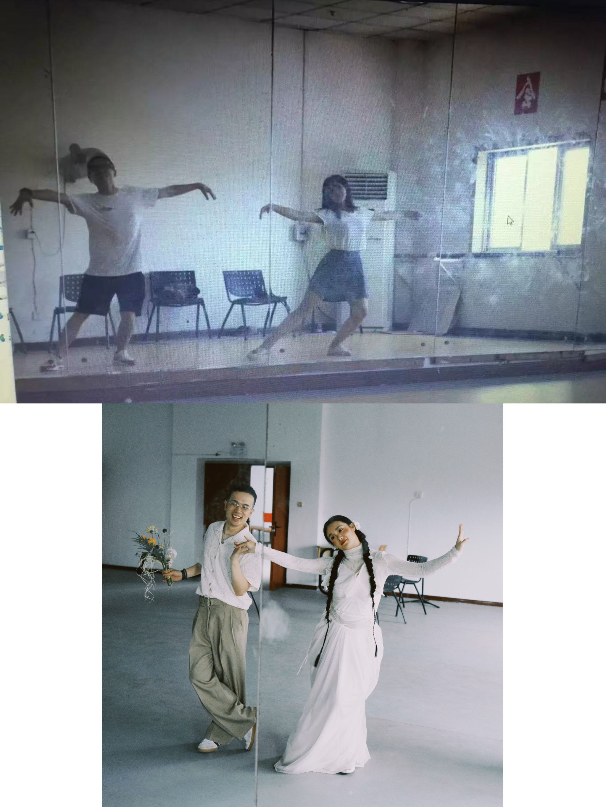 毕业后,两人各自成长、彼此同行。黄彤萼成为一名建筑设计师,夏斯琪则坚守热爱,成为一名舞蹈老师。“他工作虽然忙碌,但从未放下对舞蹈的热爱。我们常在闲暇时一起创作舞蹈作品,他也常常给我带来新的灵感。”新娘夏斯琪笑着分享道。也正因此,他们特意回到母校,在当年曾合影的相同场景拍摄婚纱照,以这样一种充满仪式感的方式,兑现年少时的约定。