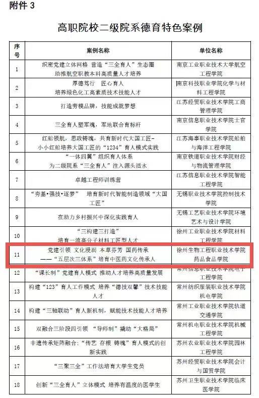 “三全育人”典型案例入选江苏省高职院校二级院系德育特色案例