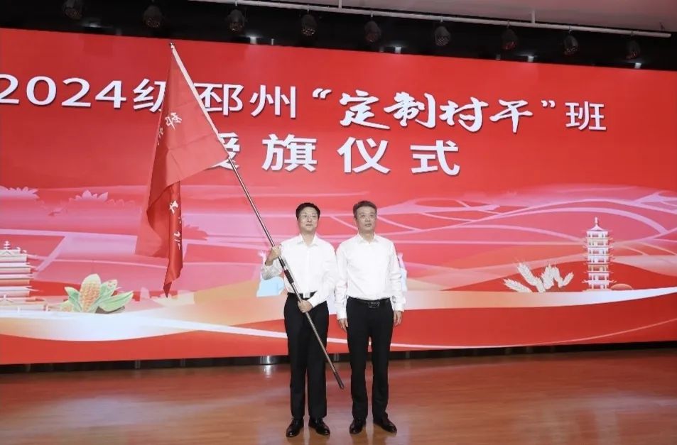 邳州市委常委、组织部部长王建阳向2024级“定制村干”班班主任陈子雨授旗