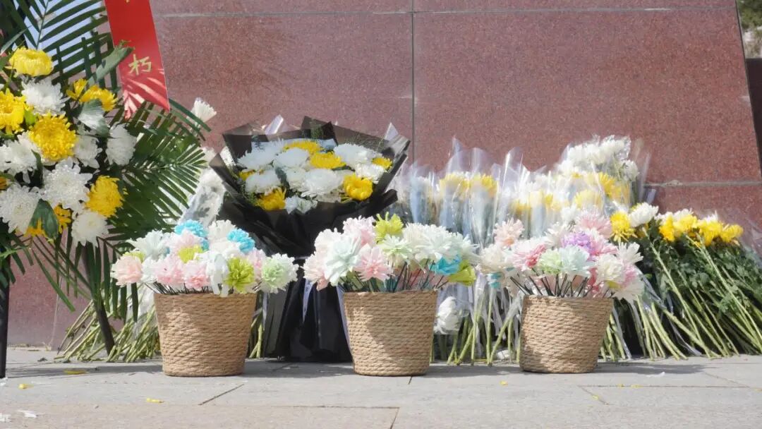 庄严肃穆的烈士陵园内,全体师生在革命烈士纪念碑前肃然列队,奏唱《中华人民共和国国歌》,随后,由学生代表将105朵亲手编扎的纪念花篮郑重敬献于纪念碑前,朵朵素菊承载着学子们的无限追思,也象征着红色基因代代相传、建党精神永放光芒。现场师生垂首默哀,以最诚挚的静默,向长眠于此的英魂致以最深沉的悼念。