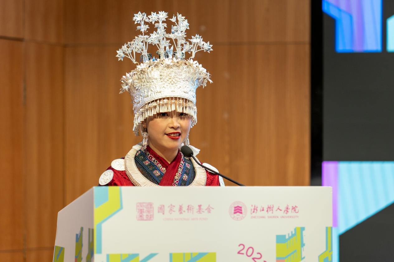 李鲁回顾了浙江树人学院从1984年创办以来的历史沿革,介绍了学校探索出了一条民办高校高品质办学的新路子。他指出,《苗绣艺术创新设计人才培训》项目是“要把包括苗绣在内的民族传统文化传承好、发展好”主旨精神的深入践行,是为苗绣艺术的传承创新做出新贡献、集聚新力量的设计服务的具体行动,将艺术融入乡村振兴,让设计助力共同富裕,让传承弘扬中华文化。