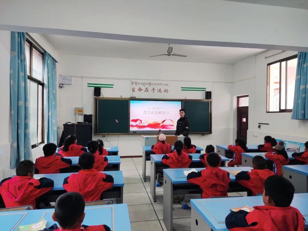 在2022年3月28日来临之际,肇庆学院第九批援藏支教服务队队员们积极投身于墨脱县各支教学校“3.28西藏百万农奴解放纪念日”系列活动,意在深入宣传西藏百万农奴解放的伟大历史意义,进一步凝聚广大师生爱党、爱国、爱家的思想共识。